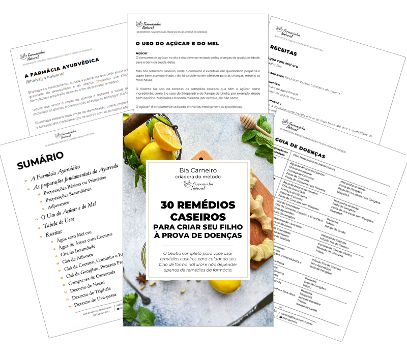 Sei o quanto essa fase exige cuidado. Por isso, no ebook você recebe orientações específicas em cada receita e ainda ganha uma aula bônus exclusiva da Farmacinha Natural para Bebês, pra usar tudo com mais segurança.